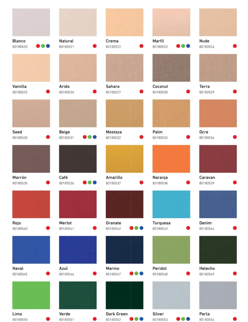 Pânza este realizată dintr-un material textil de înaltă tehnologie, cu 3 straturi, oferind o u mbră densă și asigurând protecţie împotriva radiaţiei UV și împotriva ploii.